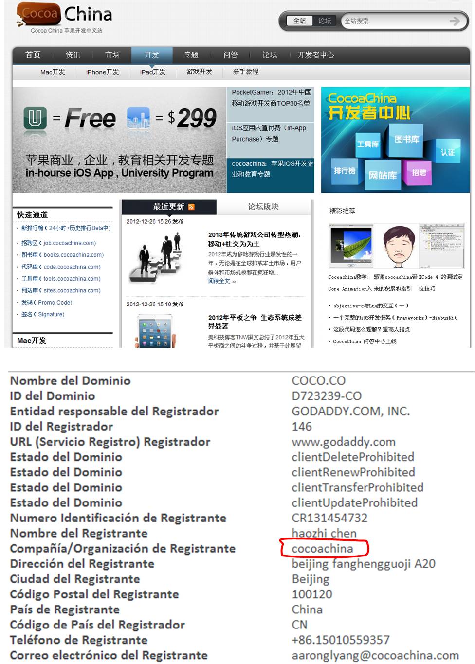 苹果产品开发网站CocoaChina.com从.CO注册局收购coco.co域名