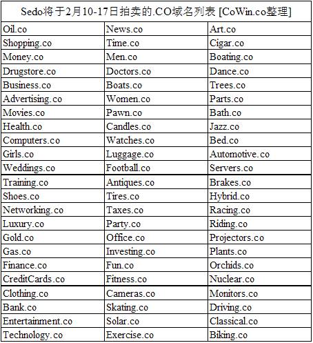 超级域名超级拍卖 Sedo将举行.CO域名拍卖会
