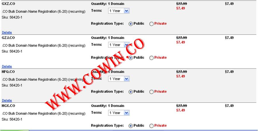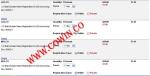 CoWin.co在今天早上9:00整的时候还注册一些3字母的.CO域名,价格就是$7.49(见上图)!
