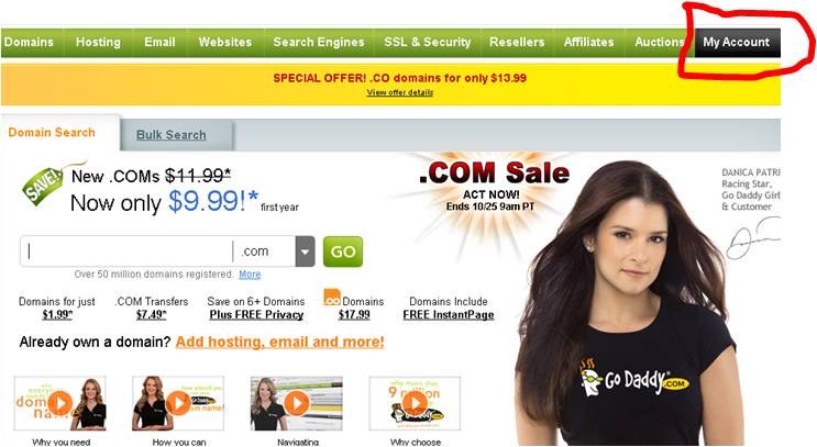 首先,登录GoDaddy账户,进入My Account选项(红线标出,下同)。