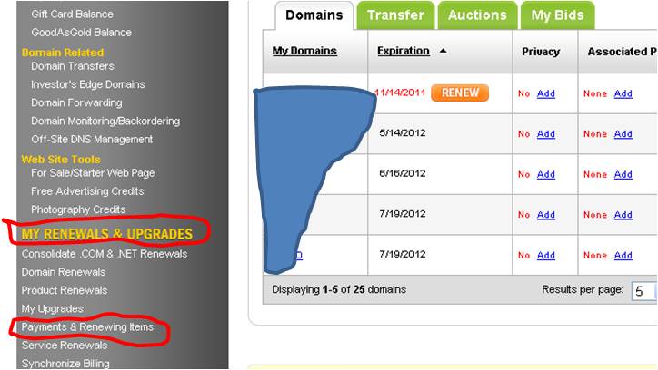 然后,在左边栏目中点击My Renewals & Upgrades中的Payments & Renewing Items。